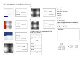 Fractions and Decimals Tenths and Hundredths Worksheet for ...