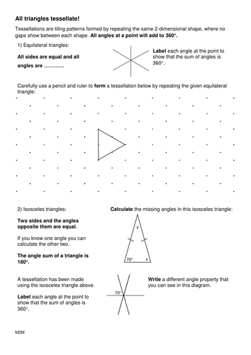 Students follow instructions on the Tessellation Worksheet to create an irregular shape that will tessellate. Create a tessellation pattern on construction by cutting a shape from a We have worksheets for teaching students about perimeter, area,angles, polygons, solid shapes, radius. Here you can find Shapes worksheets.