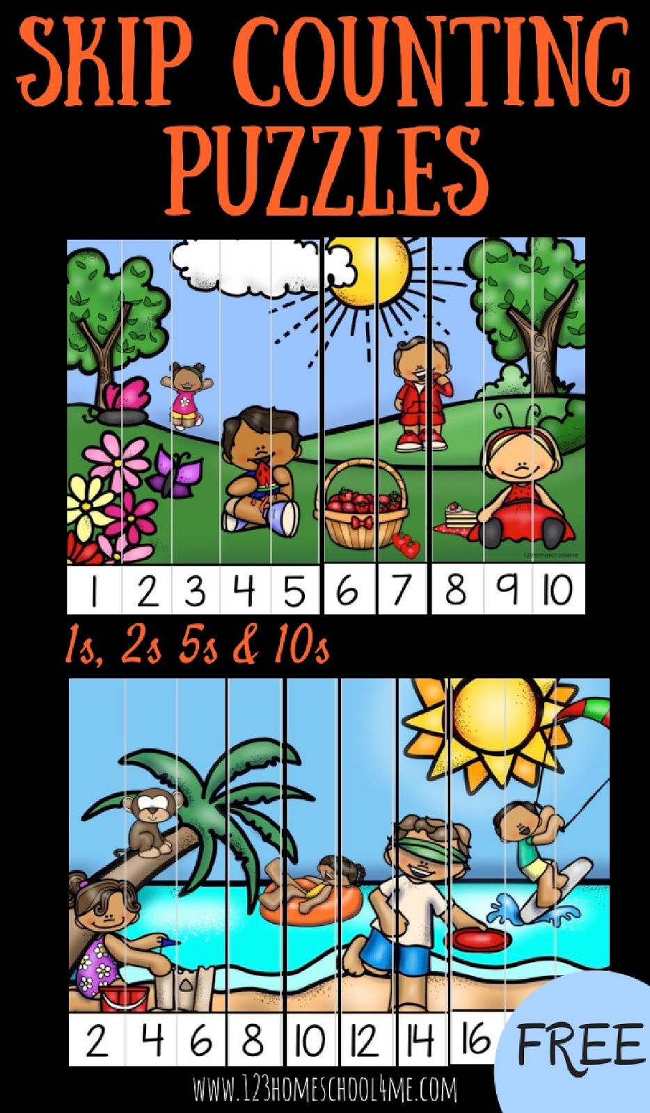 FREE Summer Skip Counting Puzzles