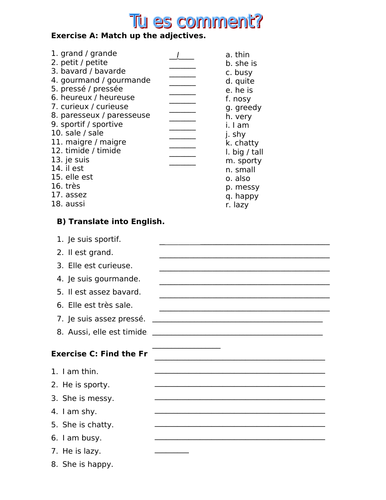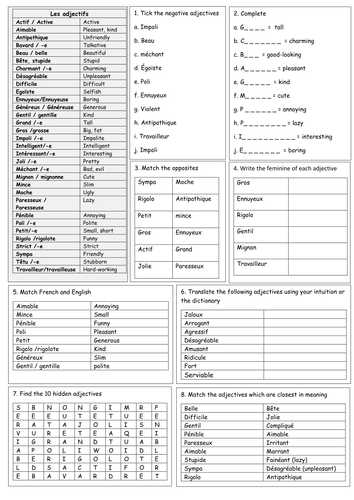 French KS3 personality adjectives (Allez 1 2.1) | Teaching ...