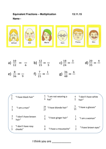 Guess Who Equivalent and Simplifying Fractions worksheets ...