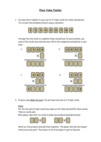 Place Value Puzzles Worksheets. Help kids understand this property of numbers with place value There are many free and printable place value worksheets available online! Place Value Worksheets -- Just click and print place value worksheets; Includes expanded form, number/word names, standard form, place values and more!