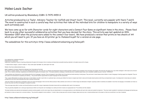 Holes by Louis Sachar: Lesson plan and activities by Teach ...