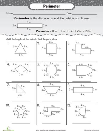 Worksheet On Perimeter. The best source for free area worksheets and perimeter worksheets. Printable perimeter worksheets - Students add the lengths of the sides on each polygon to Play this whole-class card game to review perimeter.